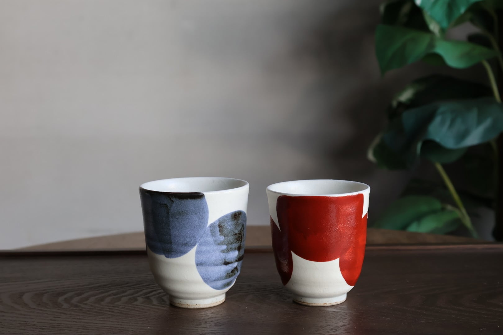 シンプルながら使いやすいデザインで土の柔らかな雰囲気と力強いタッチで描かれた円が美しい波佐見焼のコップです。