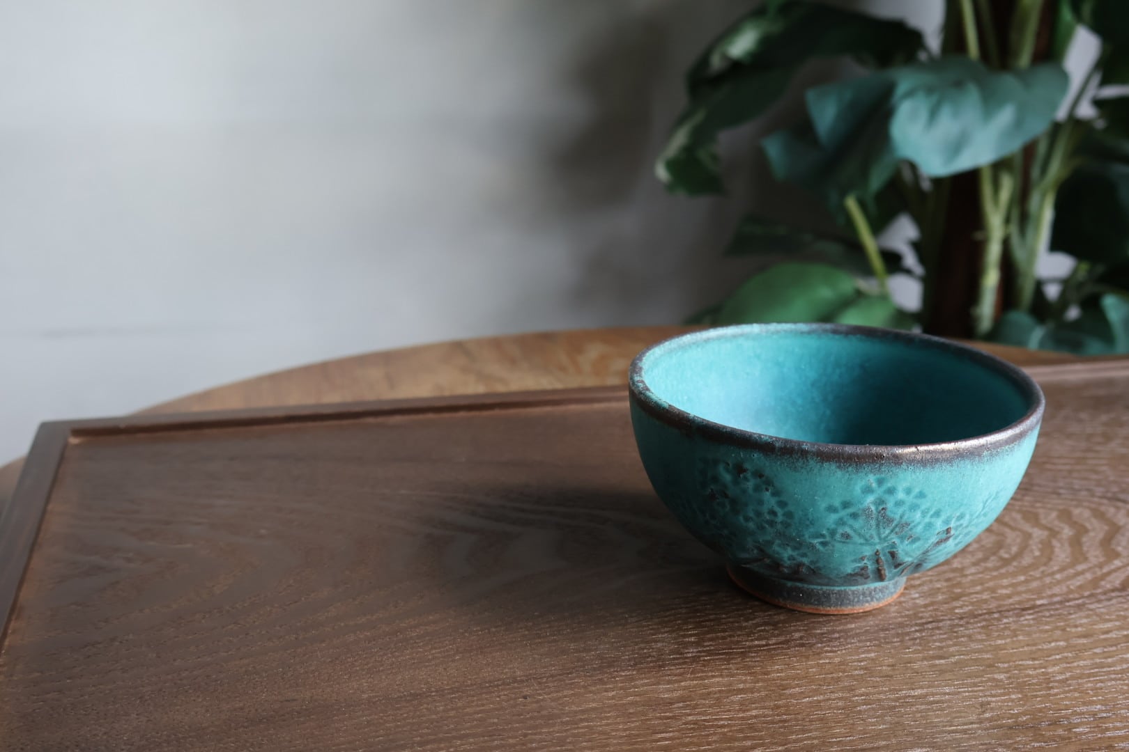 益子焼 わかさま陶芸 ハーブガーデン飯椀 シャビーターコイズ