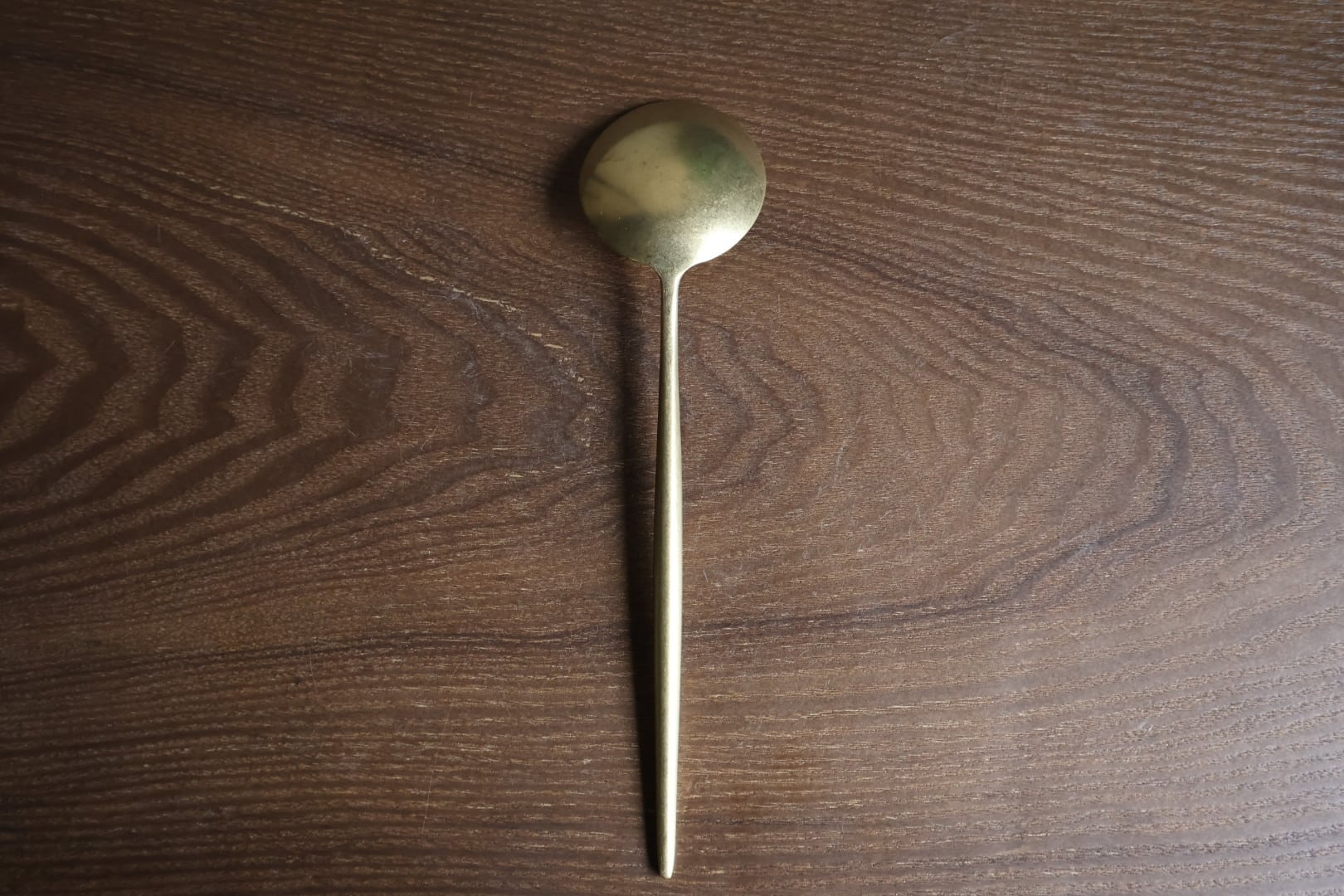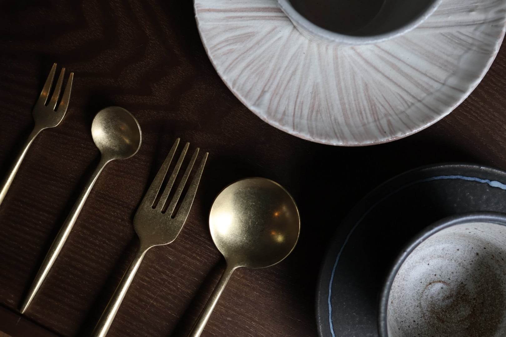 つや消し仕上げを施した、特別感のあるマットゴールドのカトラリー。