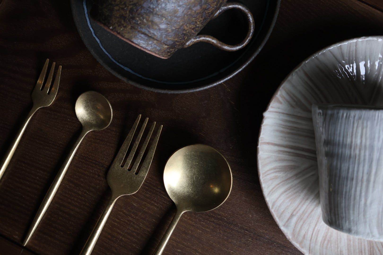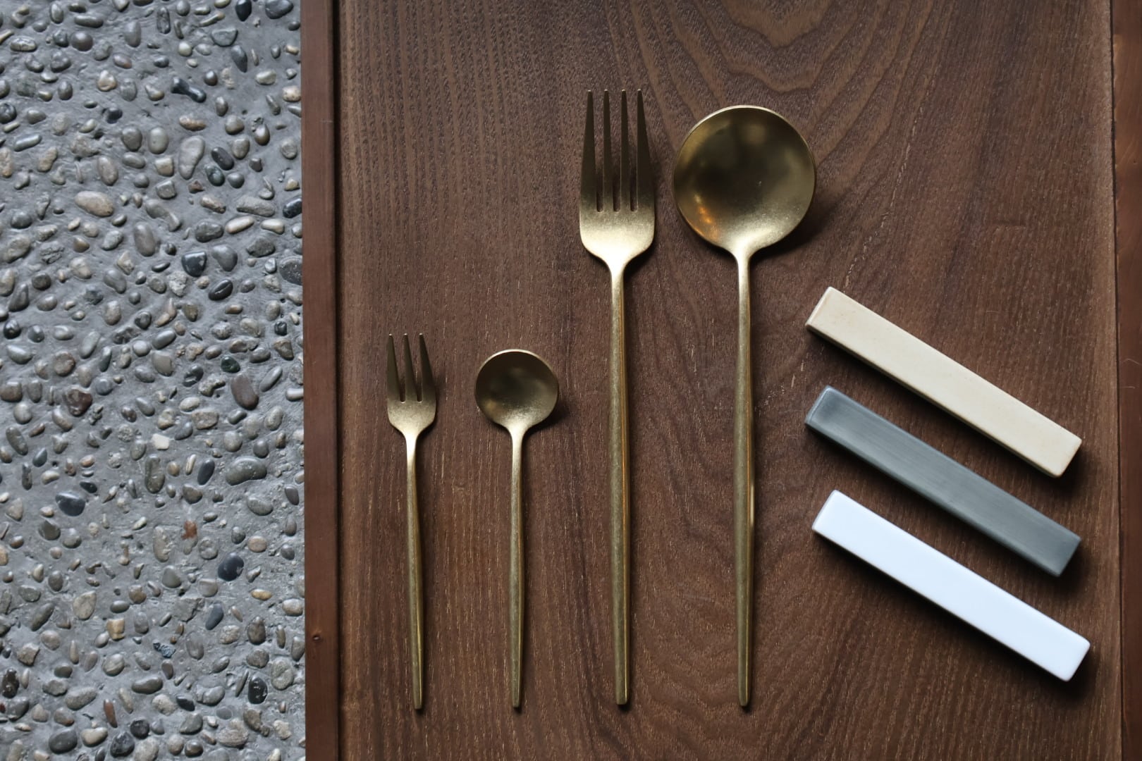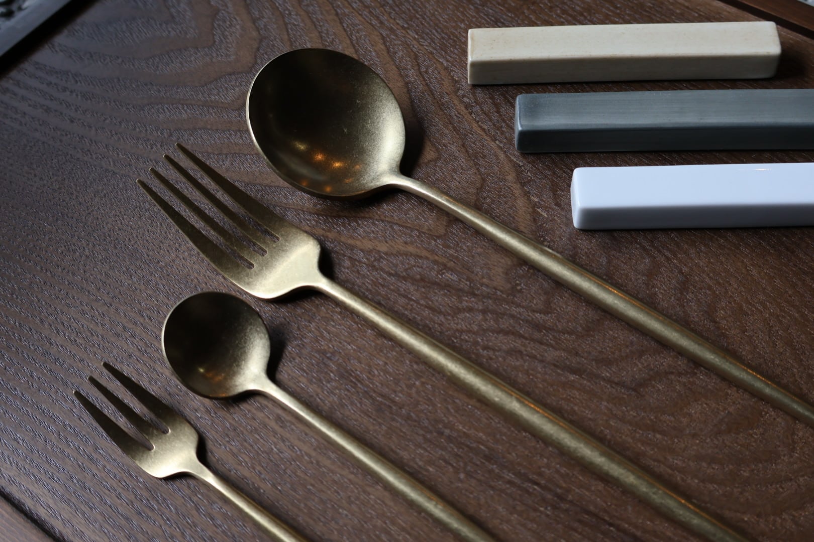 つや消し仕上げを施した、特別感のあるマットゴールドのカトラリー。