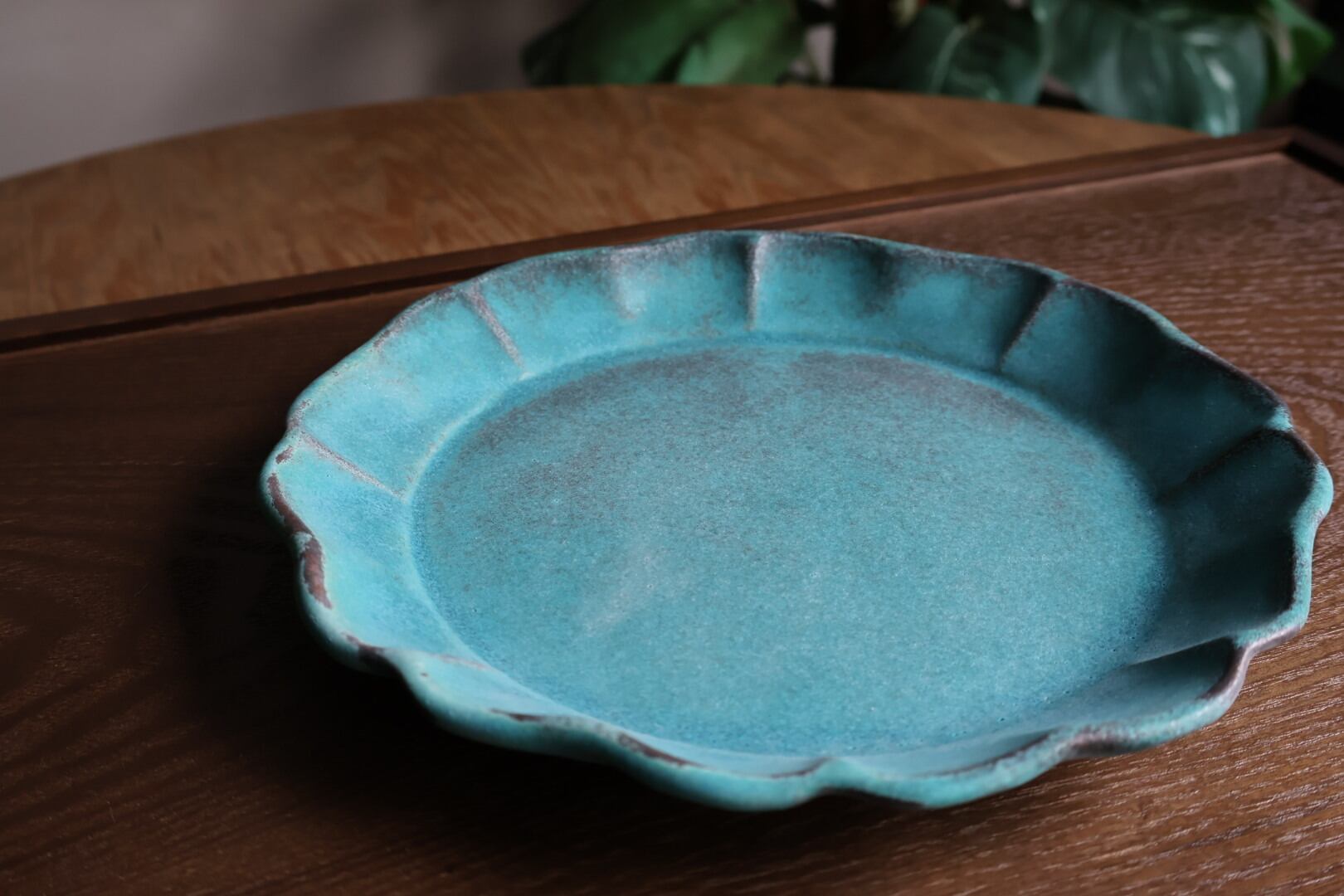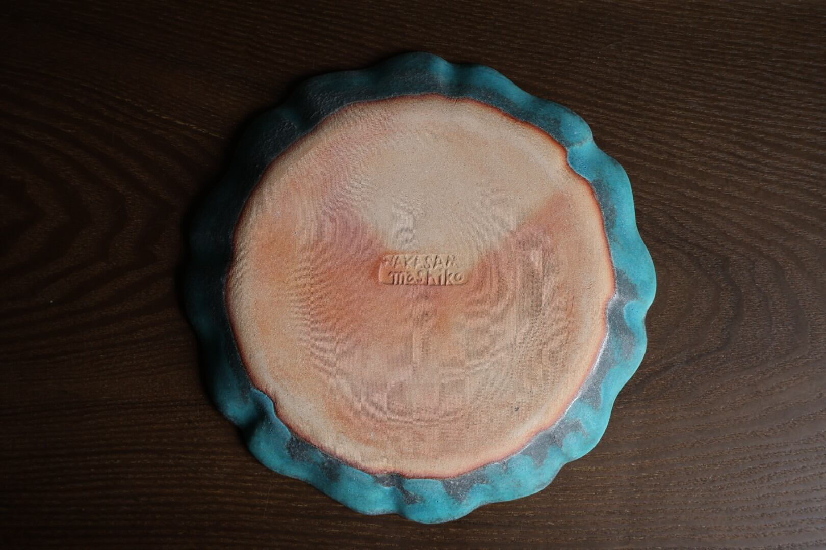 益子焼 わかさま陶芸 ひまわりのお皿 シャビーターコイズ