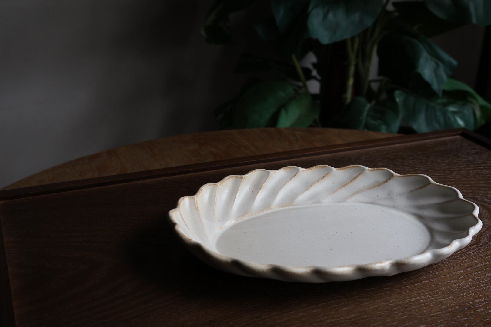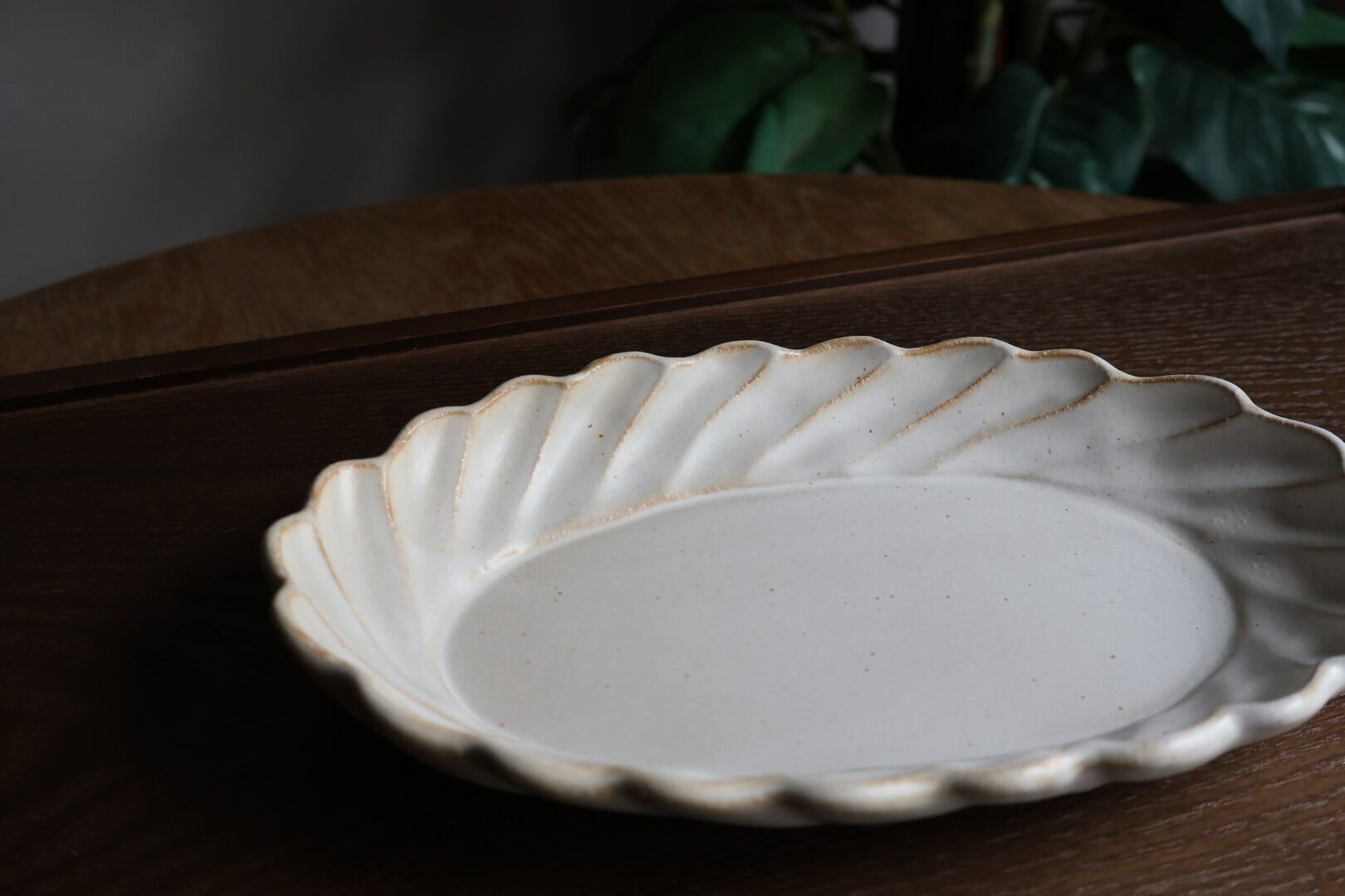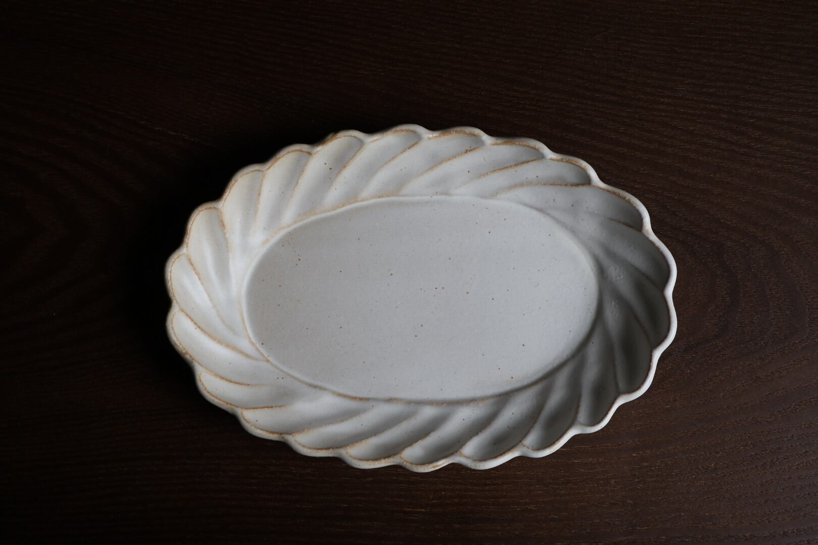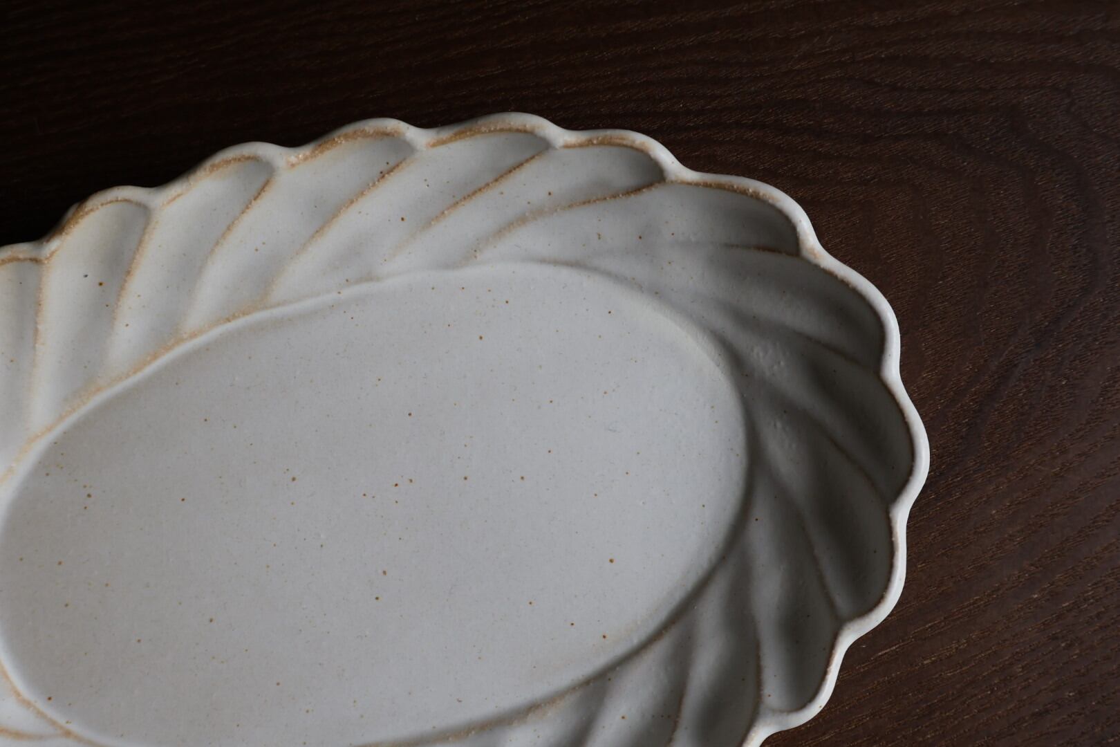 花びらのようなリムが印象的なの益子焼のオーバル皿。