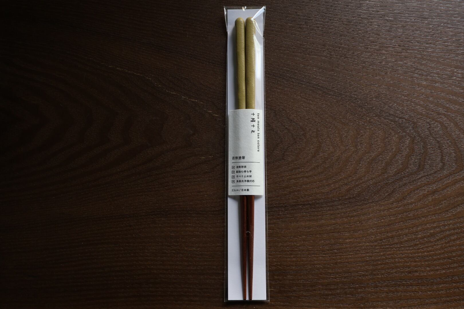 若狭箸 十膳 十色 波彫乾漆 モスイエロー