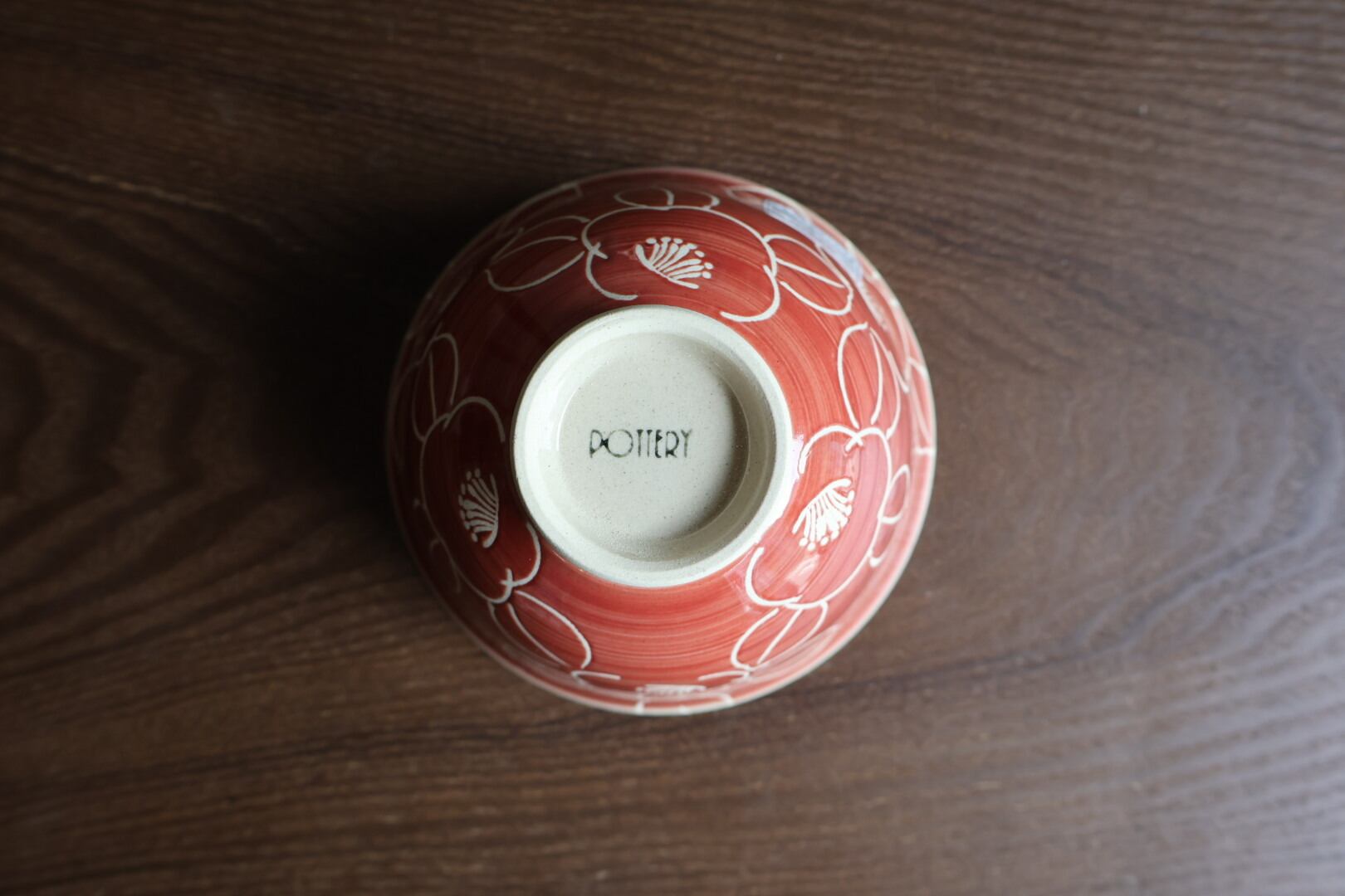 花モチーフの模様がかわいい波佐見焼の飯碗です。