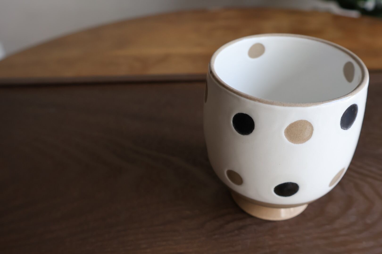 淡い色味の水玉模様がかわいい波佐見焼のコップ。