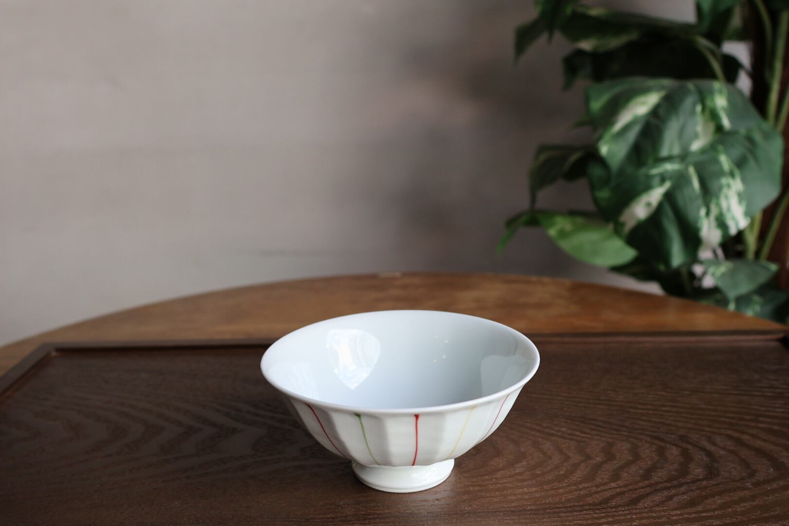 三色で描かれた十草が美しい波佐見焼の軽量飯碗です。