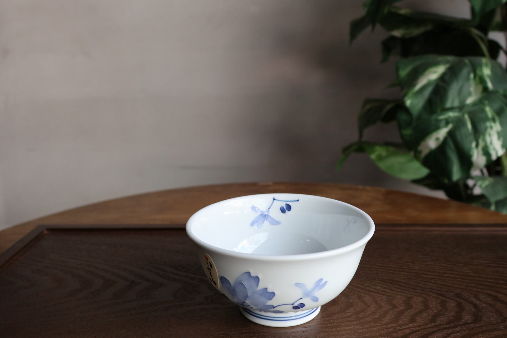 内側と外側に描かれた淡い色の花モチーフが素敵な波佐見焼の軽量飯碗です。