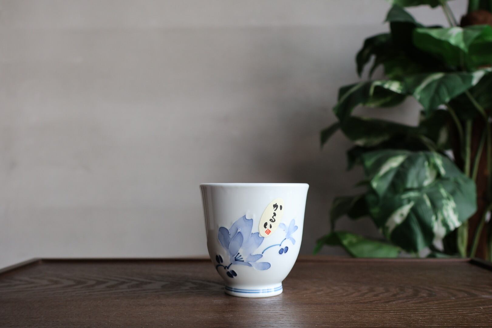 内側と外側に描かれた淡い色の花モチーフが素敵な波佐見焼の軽量湯呑です。