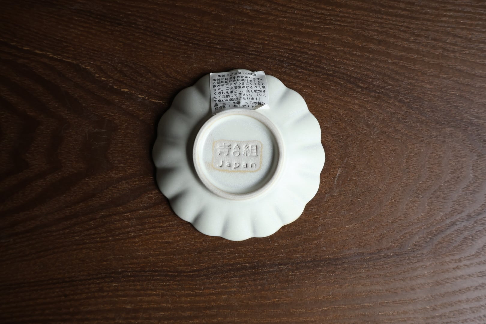 花びらのようなふちが上品なアクセントの瀬戸焼の土ものの器 Hana シリーズの小皿(S)。